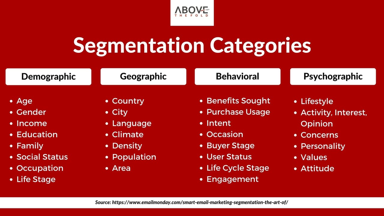 Email segmentation refers to the process of categorizing your email subscriber list by factors such as age group, jobs, demographics, among others. Email segmentation helps make your content more targeted and relevant. That means you can connect with your target audience better.