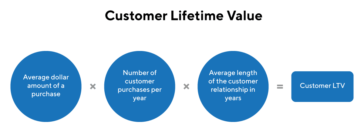 You can find this value by taking the average dollar amount of a purchase, multiplied by the average number of purchases a customer makes in a year, multiplied by the average number of years a customer works with you.
